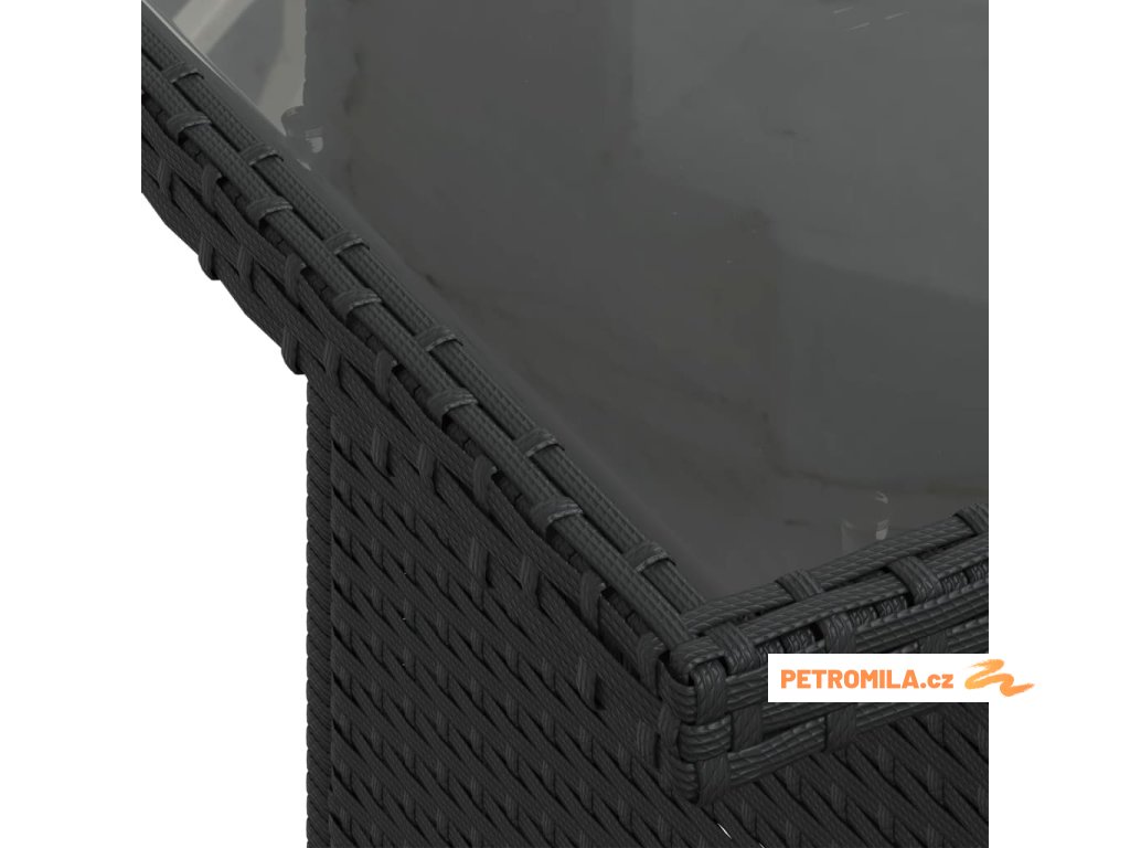 - Materiál: PE ratan, práškově lakovaná ocel, tvrzené sklo