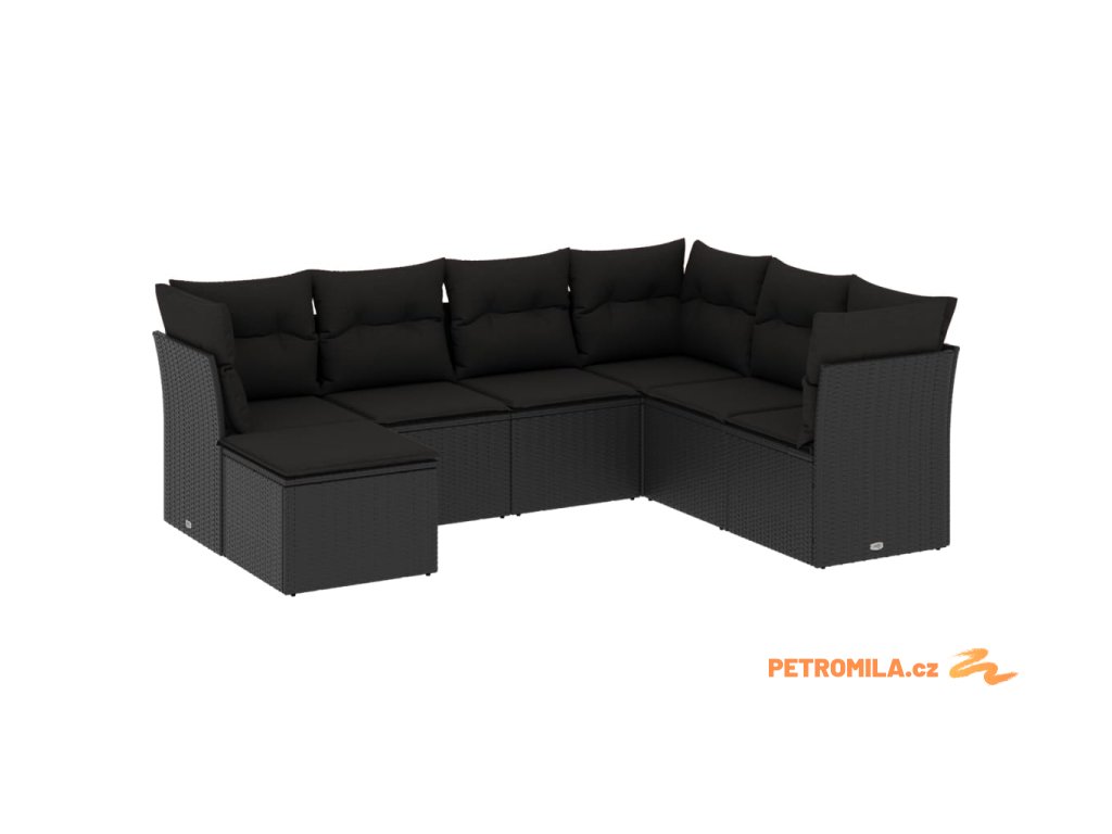 7dílná zahradní sedací souprava s poduškami černá polyratan