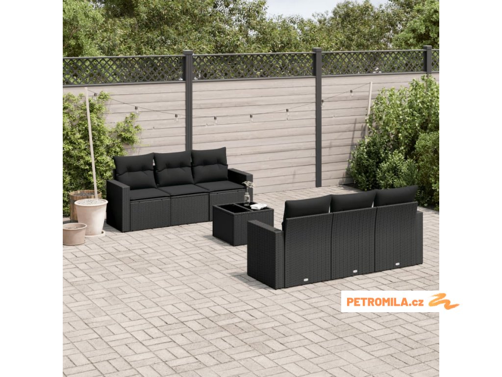 7dílná zahradní sedací souprava s poduškami černá polyratan
