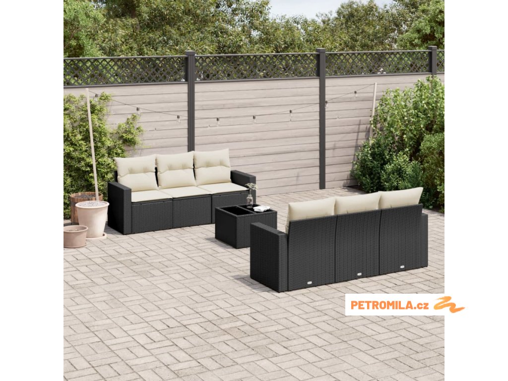 7dílná zahradní sedací souprava s poduškami černá polyratan