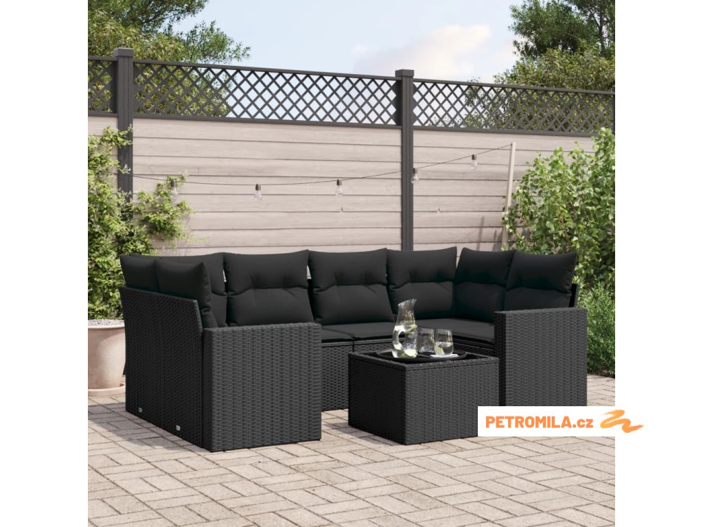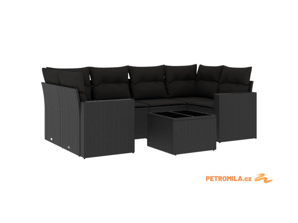 7dílná zahradní sedací souprava s poduškami černá polyratan