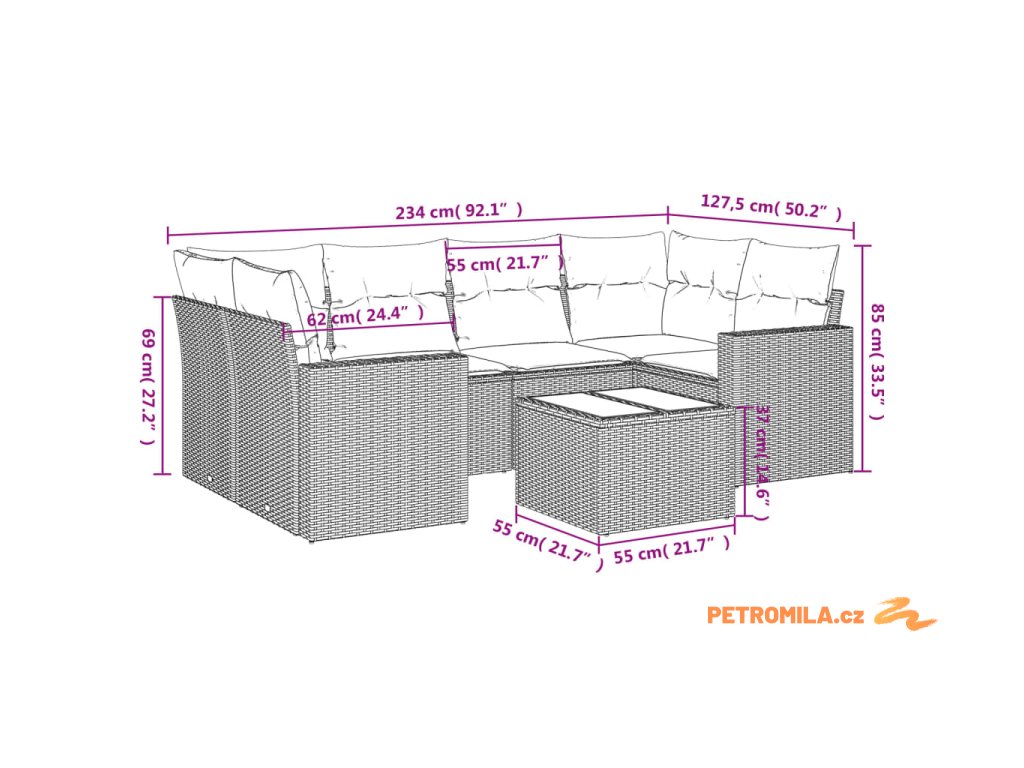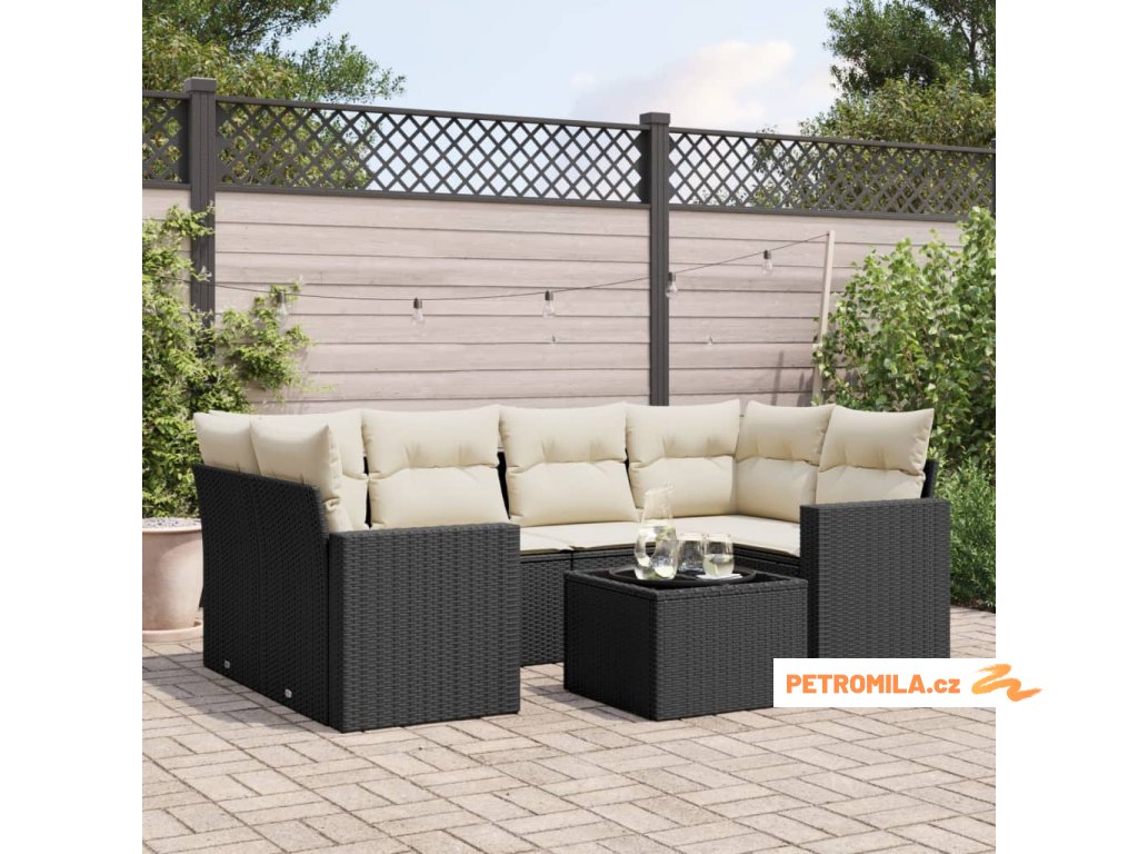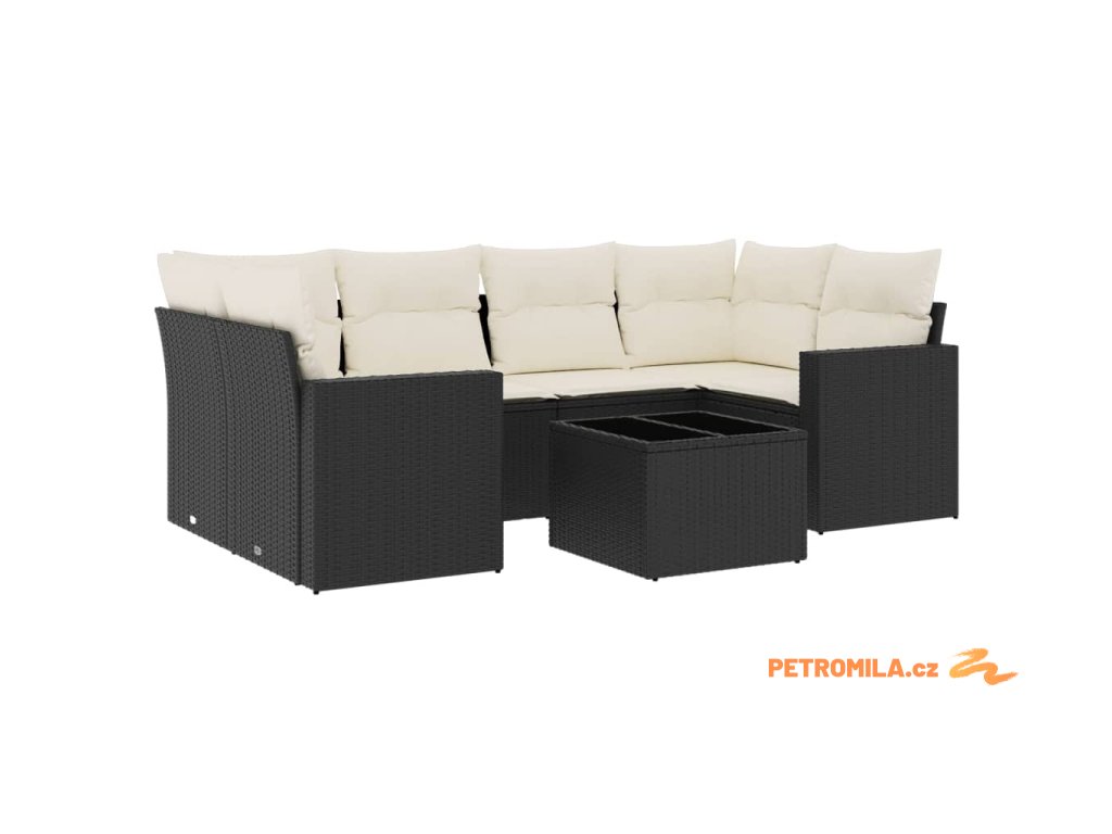 7dílná zahradní sedací souprava s poduškami černá polyratan