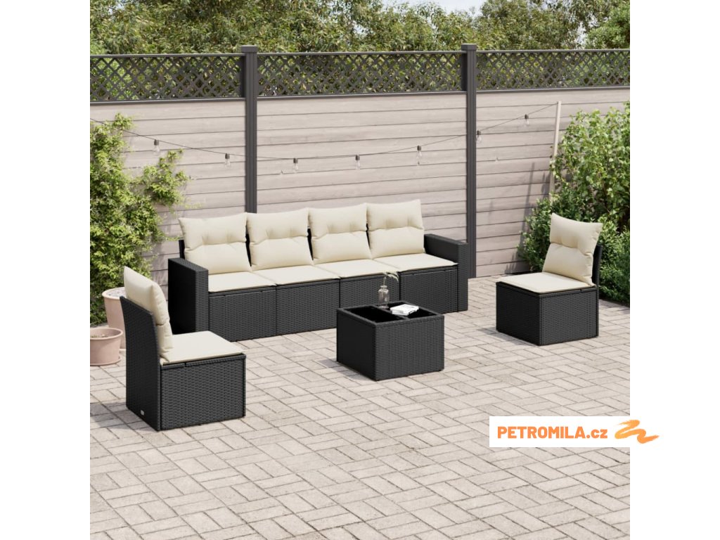 7dílná zahradní sedací souprava s poduškami černá polyratan