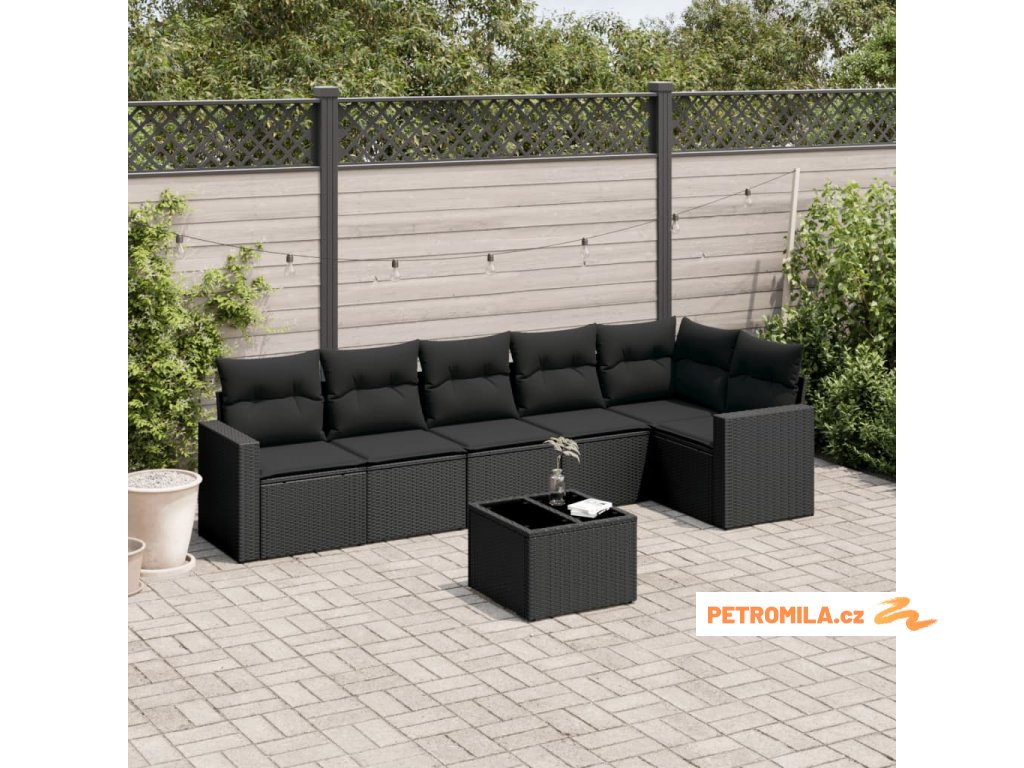 7dílná zahradní sedací souprava s poduškami černá polyratan