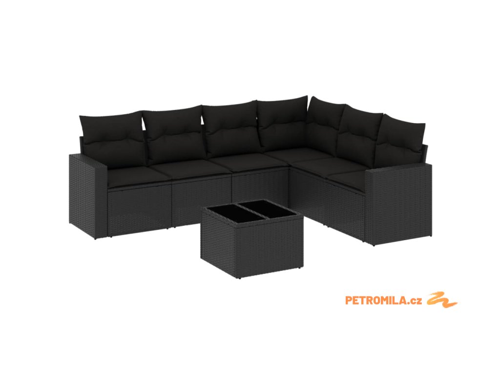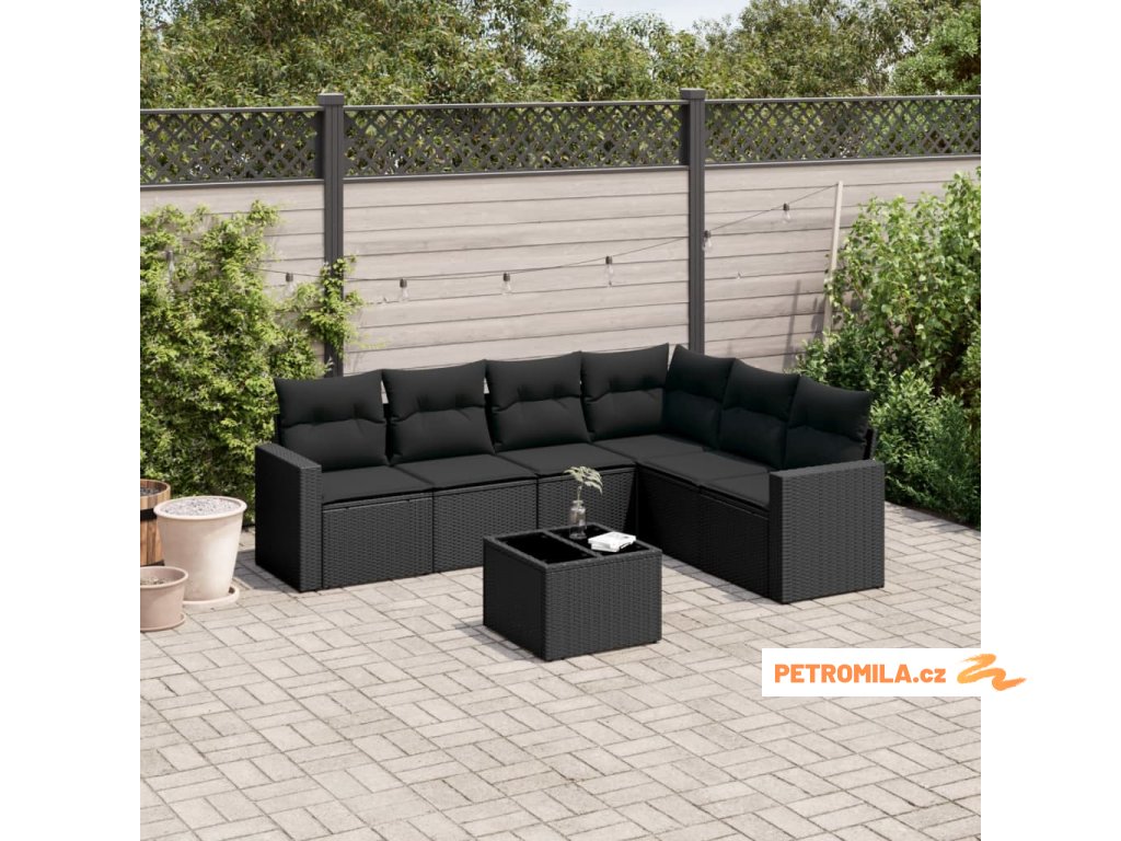 7dílná zahradní sedací souprava s poduškami černá polyratan