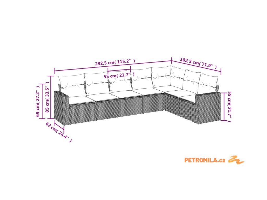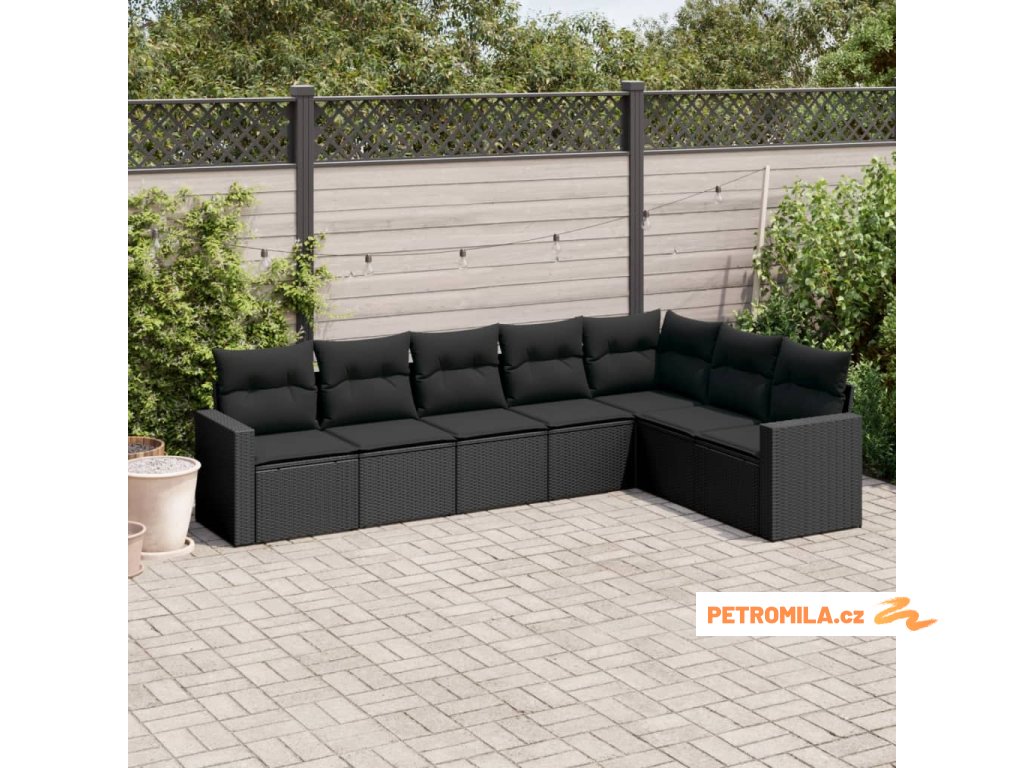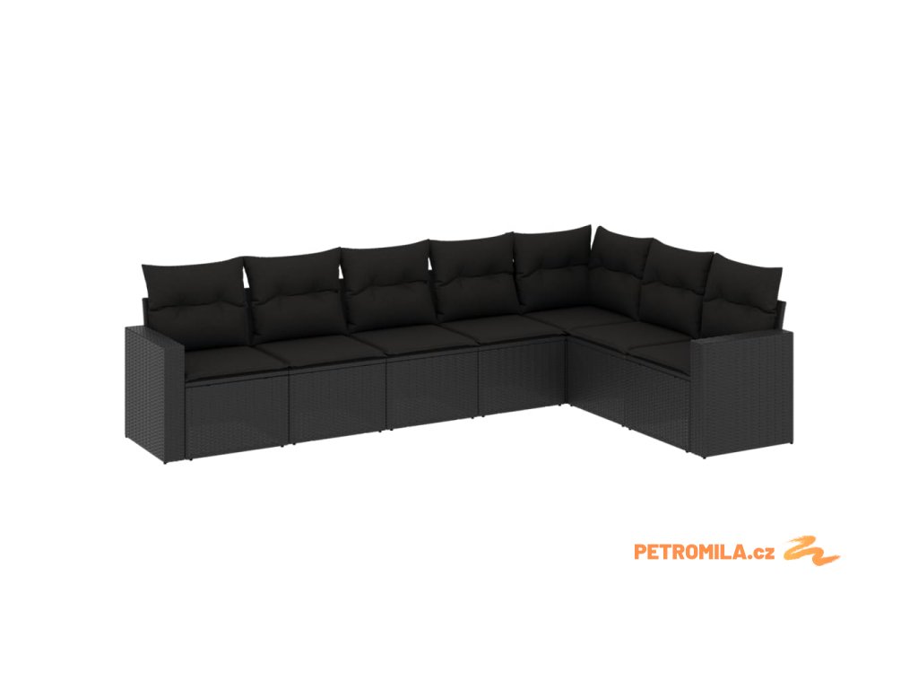 7dílná zahradní sedací souprava s poduškami černá polyratan