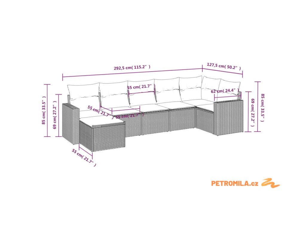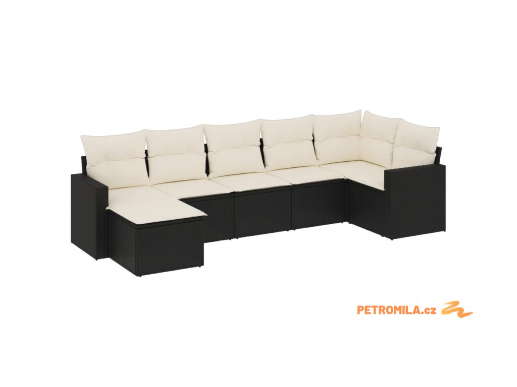 7dílná zahradní sedací souprava s poduškami černá polyratan