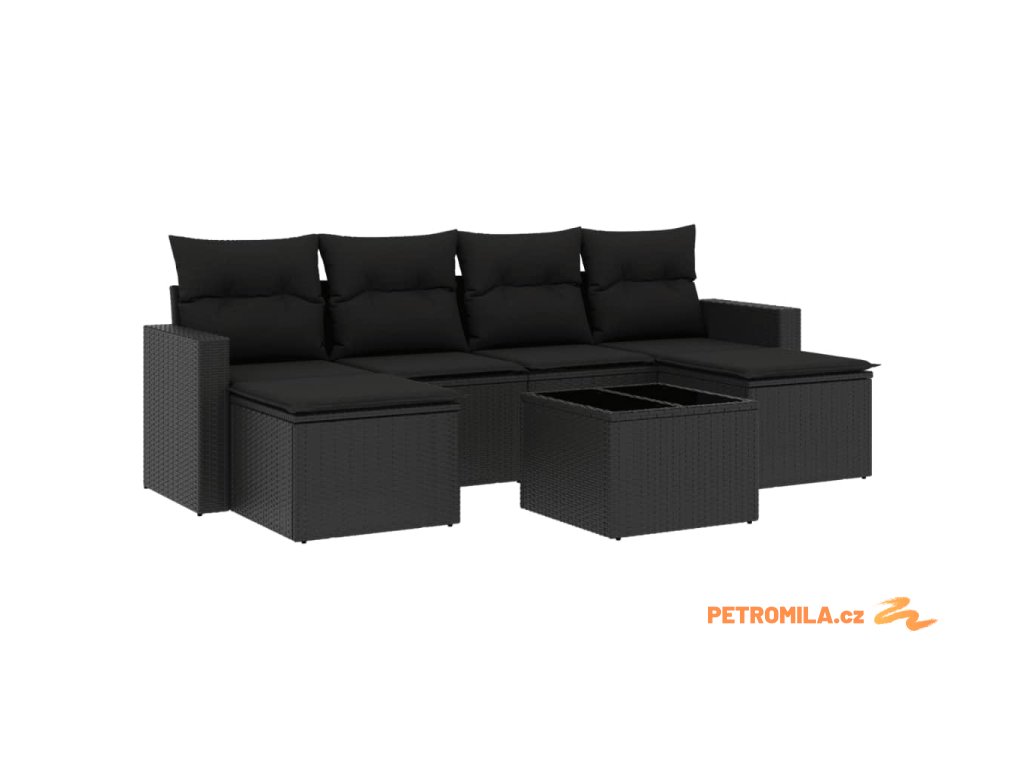 7dílná zahradní sedací souprava s poduškami černá polyratan