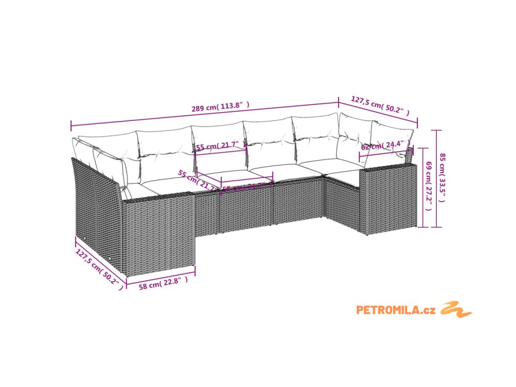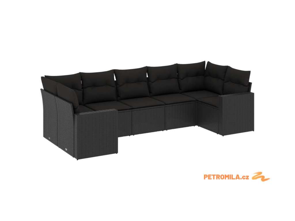 7dílná zahradní sedací souprava s poduškami černá polyratan