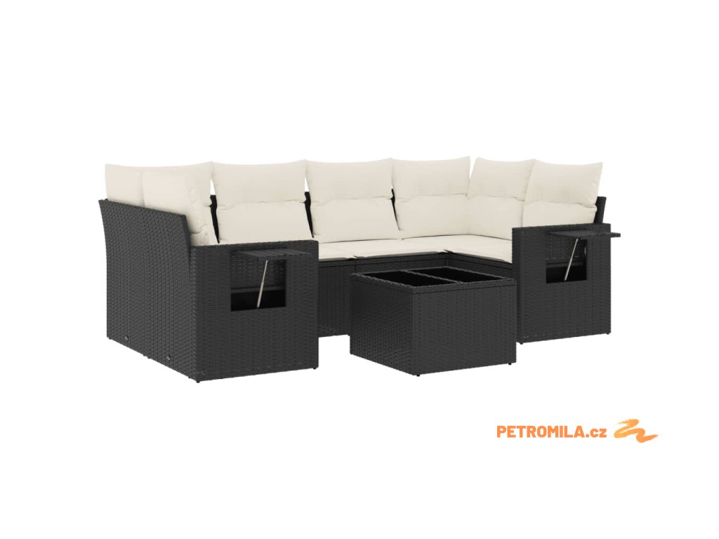 7dílná zahradní sedací souprava s poduškami černá polyratan