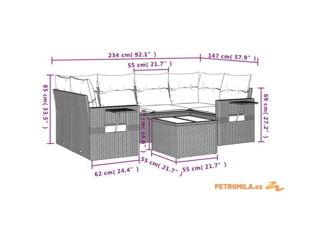 Tato zahradní sedací souprava je dokonalým doplňkem vaší zahrady, terasy nebo dvorku a poskytne vám pohodlné a příjemné místo, kde si můžete povídat s rodinou a přáteli nebo jen tak odpočívat a užívat si pobyt venku.