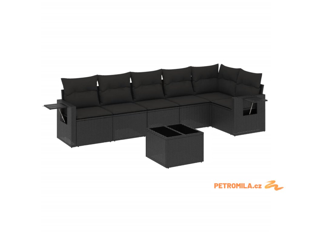 7dílná zahradní sedací souprava s poduškami černá polyratan
