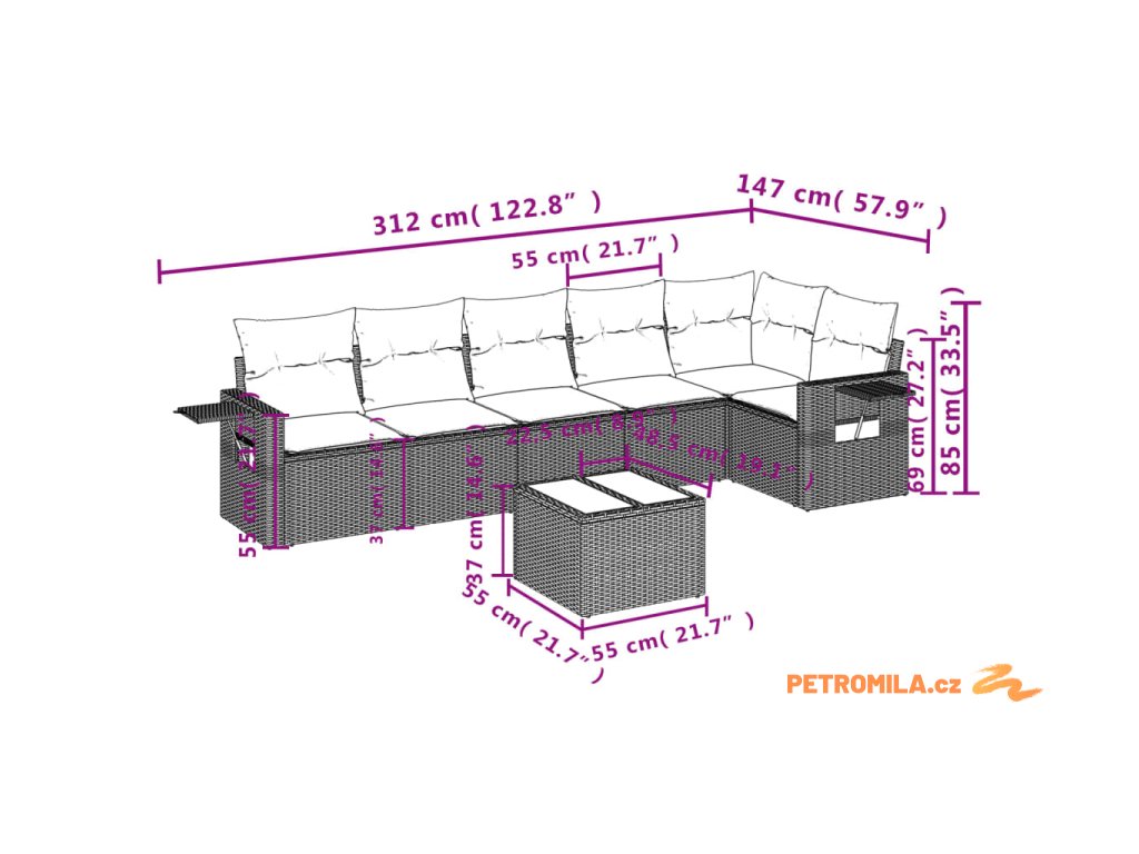 Tato zahradní sedací souprava je dokonalým doplňkem vaší zahrady, terasy nebo dvorku a poskytne vám pohodlné a příjemné místo, kde si můžete povídat s rodinou a přáteli nebo jen tak odpočívat a užívat si pobyt venku.