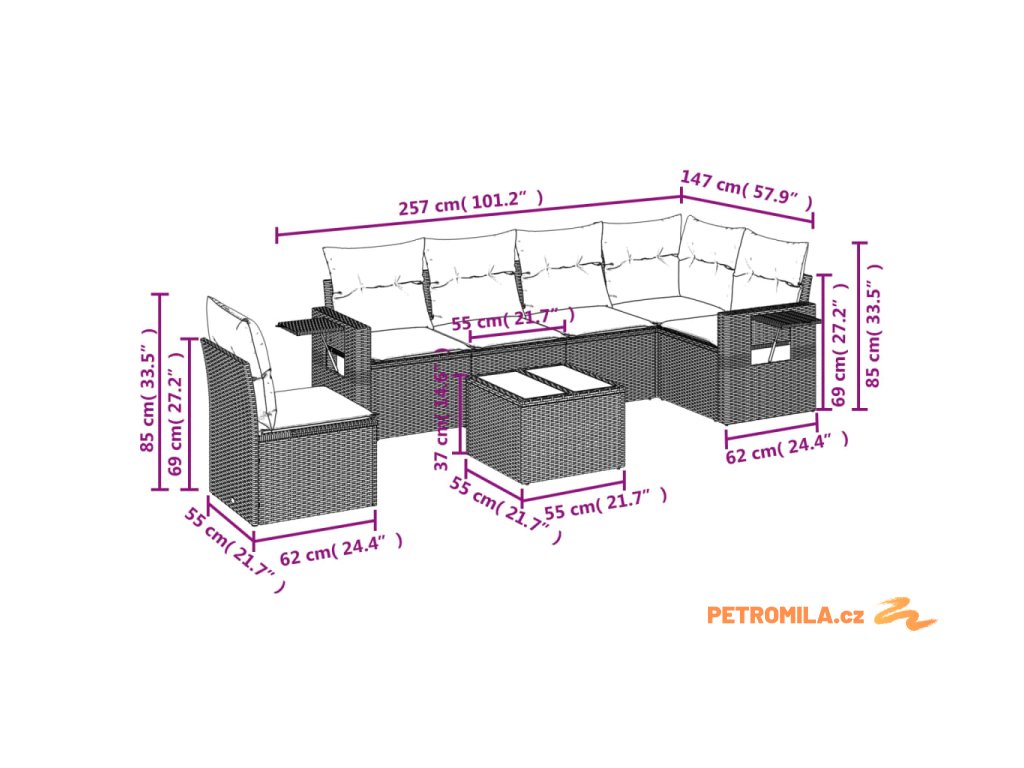 Tato zahradní sedací souprava je dokonalým doplňkem vaší zahrady, terasy nebo dvorku a poskytne vám pohodlné a příjemné místo, kde si můžete povídat s rodinou a přáteli nebo jen tak odpočívat a užívat si pobyt venku.