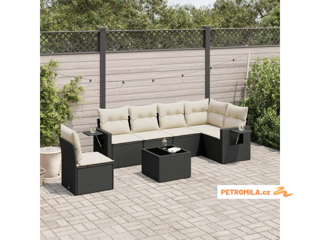 7dílná zahradní sedací souprava s poduškami černá polyratan