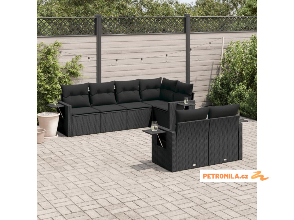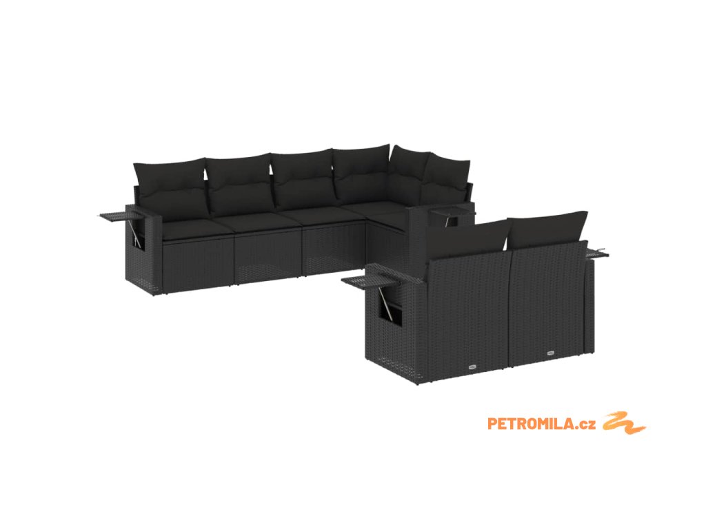 7dílná zahradní sedací souprava s poduškami černá polyratan