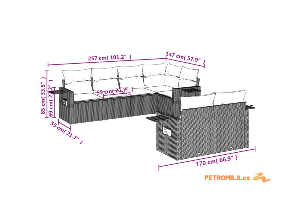 Tato zahradní sedací souprava je dokonalým doplňkem vaší zahrady, terasy nebo dvorku a poskytne vám pohodlné a příjemné místo, kde si můžete povídat s rodinou a přáteli nebo jen tak odpočívat a užívat si pobyt venku.