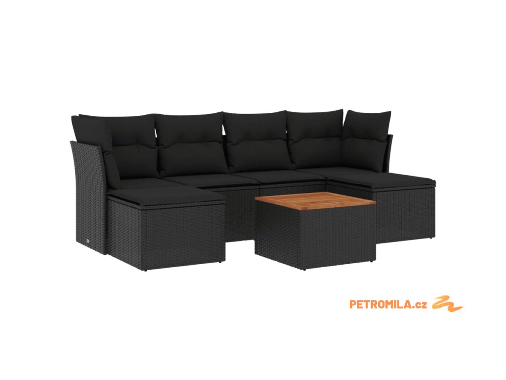 7dílná zahradní sedací souprava s poduškami černá polyratan