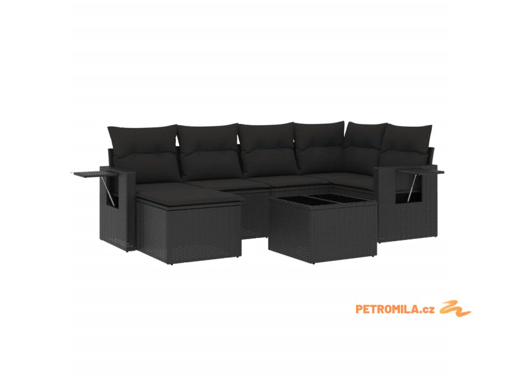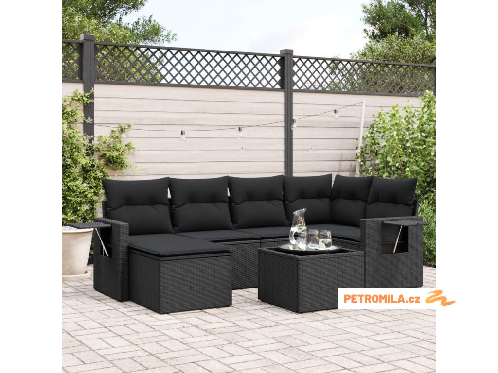 7dílná zahradní sedací souprava s poduškami černá polyratan