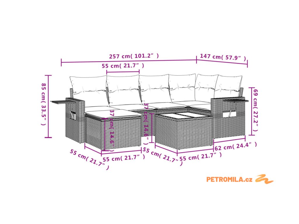 Tato zahradní sedací souprava je dokonalým doplňkem vaší zahrady, terasy nebo dvorku a poskytne vám pohodlné a příjemné místo, kde si můžete povídat s rodinou a přáteli nebo jen tak odpočívat a užívat si pobyt venku.