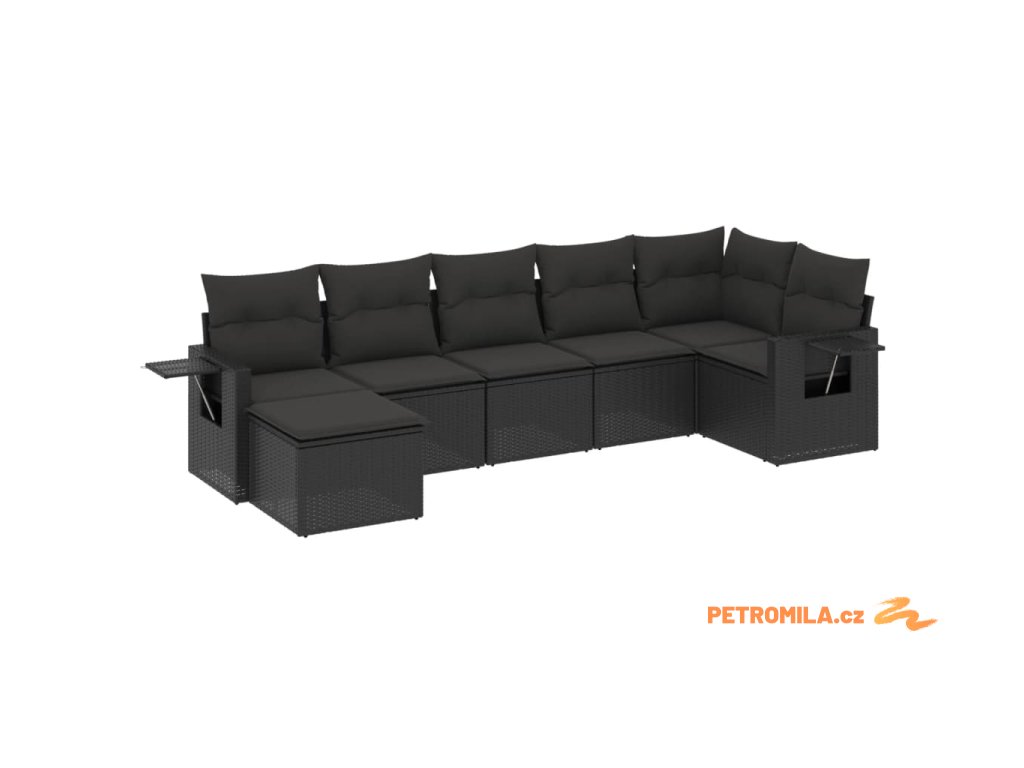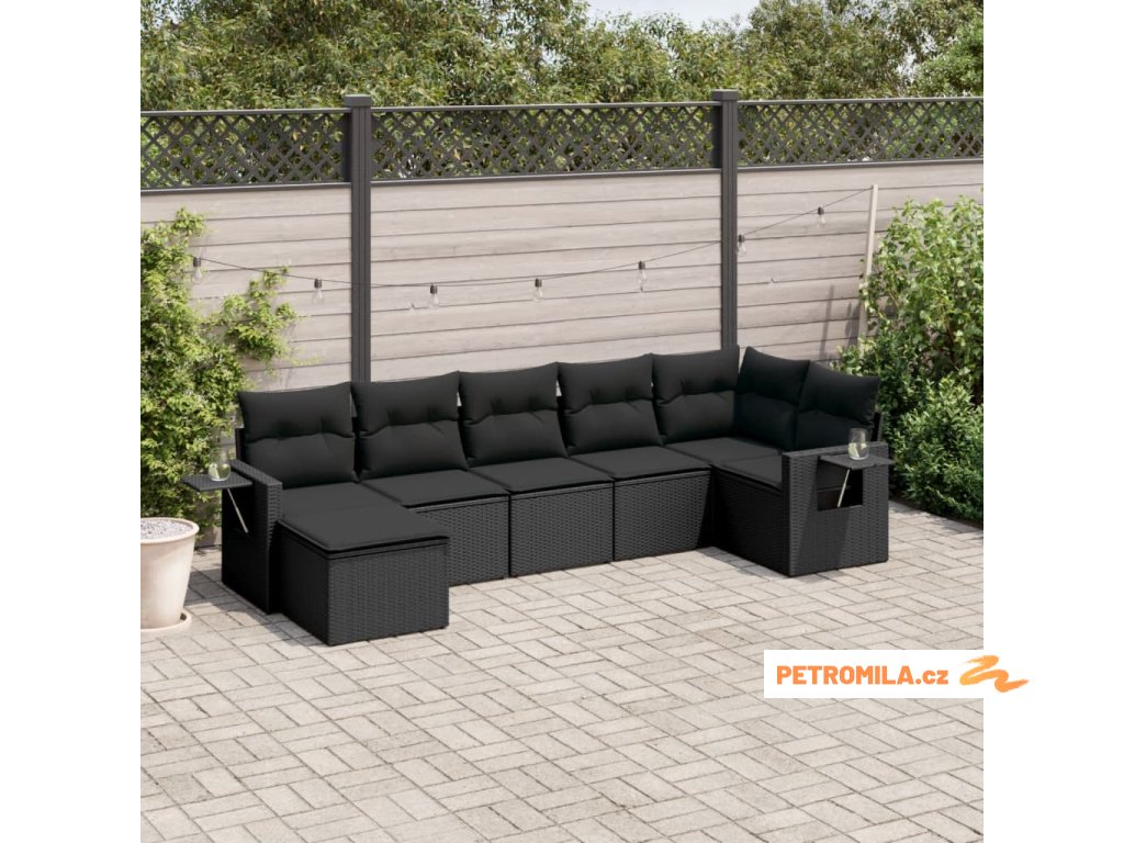 7dílná zahradní sedací souprava s poduškami černá polyratan