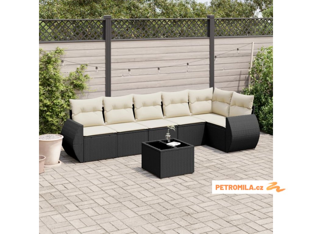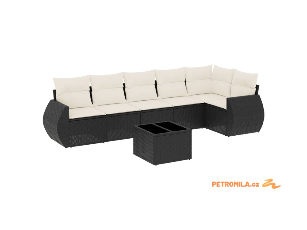 7dílná zahradní sedací souprava s poduškami černá polyratan