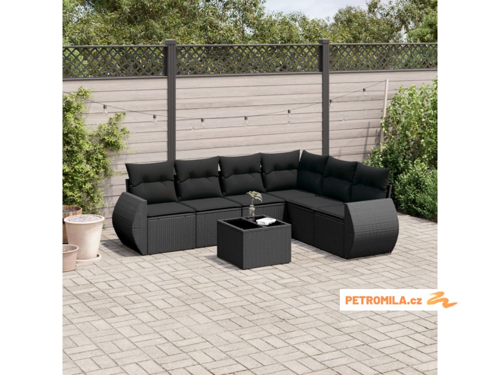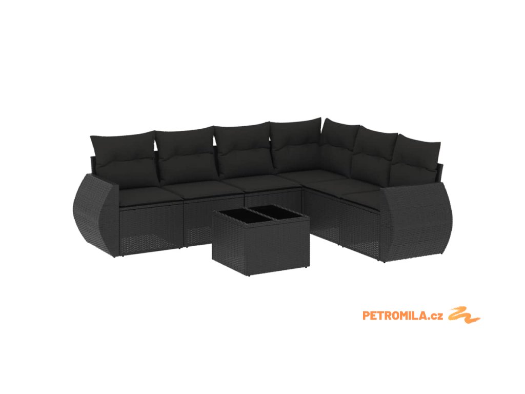 7dílná zahradní sedací souprava s poduškami černá polyratan