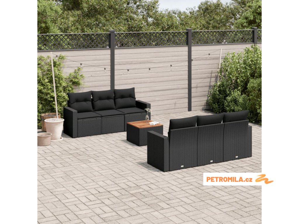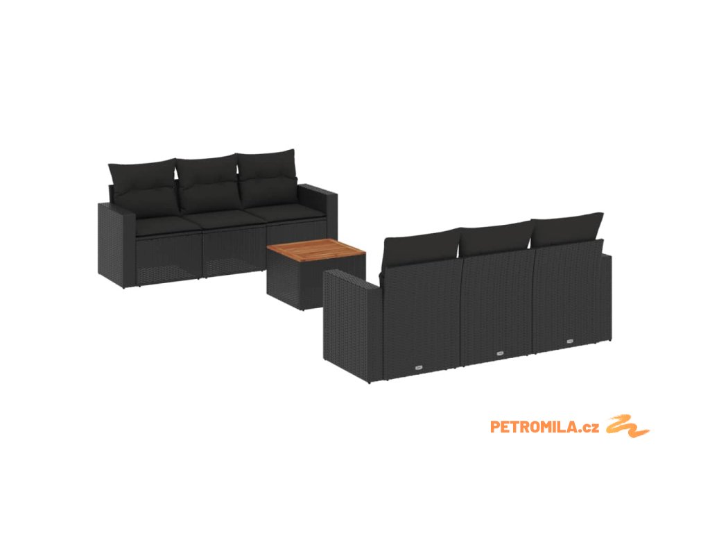 7dílná zahradní sedací souprava s poduškami černá polyratan
