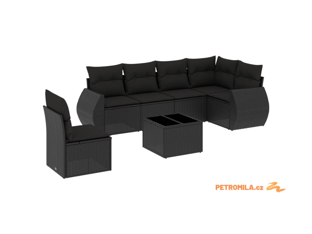 7dílná zahradní sedací souprava s poduškami černá polyratan