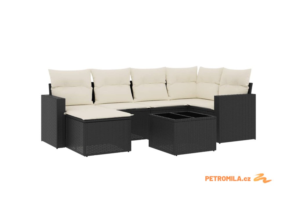 7dílná zahradní sedací souprava s poduškami černá polyratan
