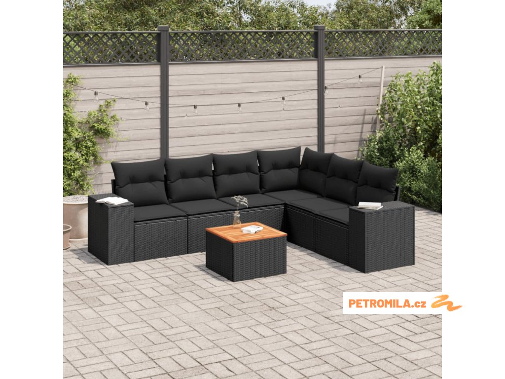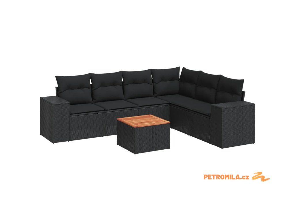 7dílná zahradní sedací souprava s poduškami černá polyratan