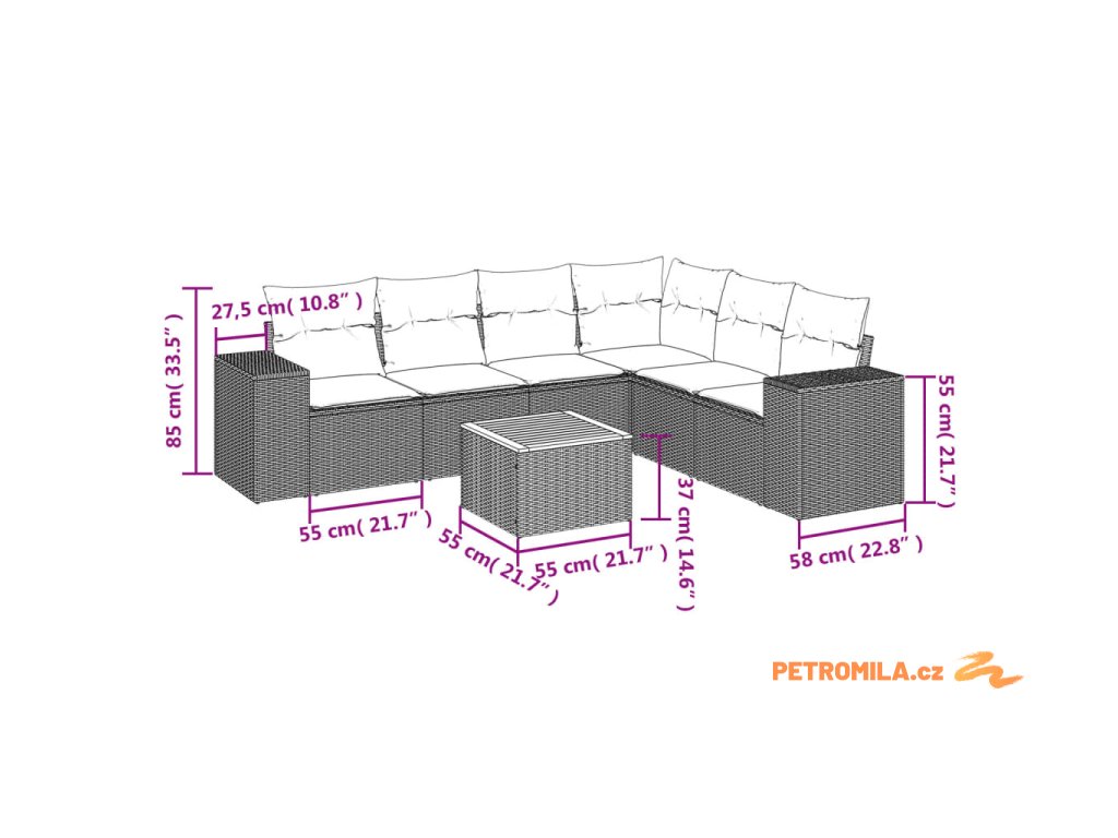 Sada zahradních pohovek s polštářem 8 pcs Béžová Poly ratan