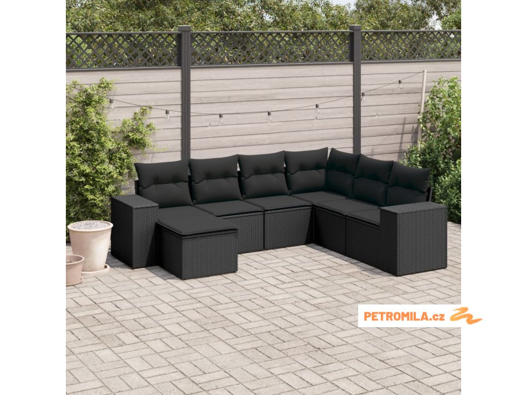 7dílná zahradní sedací souprava s poduškami černá polyratan
