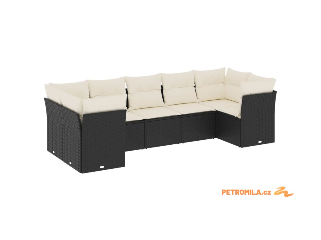 7dílná zahradní sedací souprava s poduškami černá polyratan