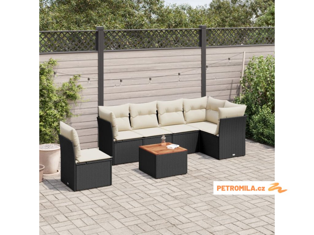 7dílná zahradní sedací souprava s poduškami černá polyratan