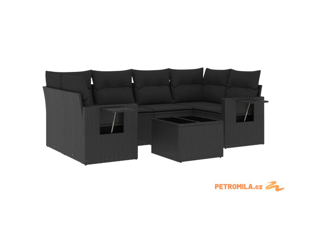 7dílná zahradní sedací souprava s poduškami černá polyratan