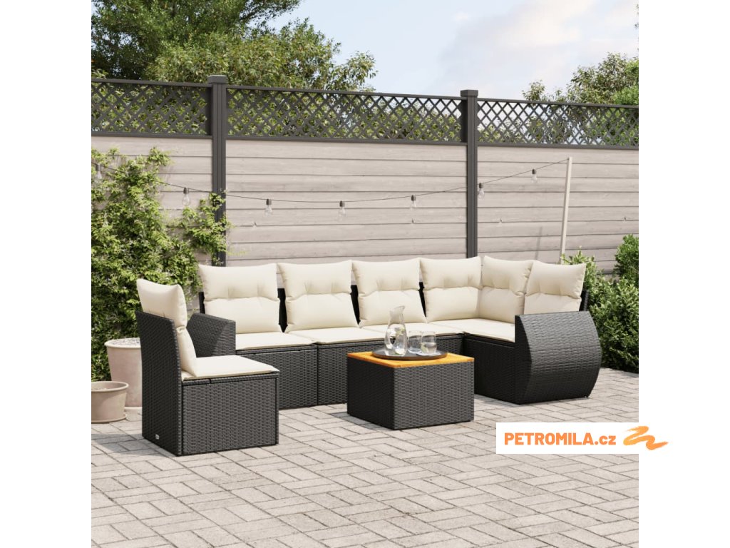 7dílná zahradní sedací souprava s poduškami černá polyratan