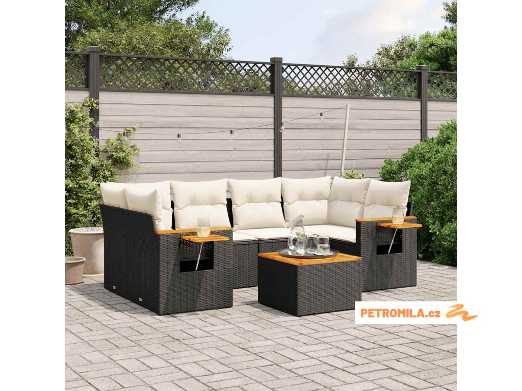 7dílná zahradní sedací souprava s poduškami černá polyratan