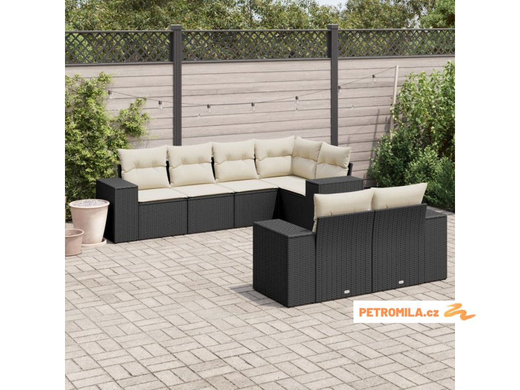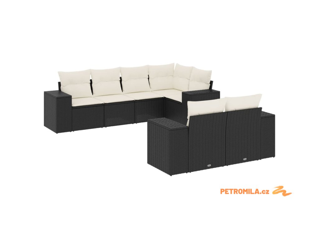 7dílná zahradní sedací souprava s poduškami černá polyratan