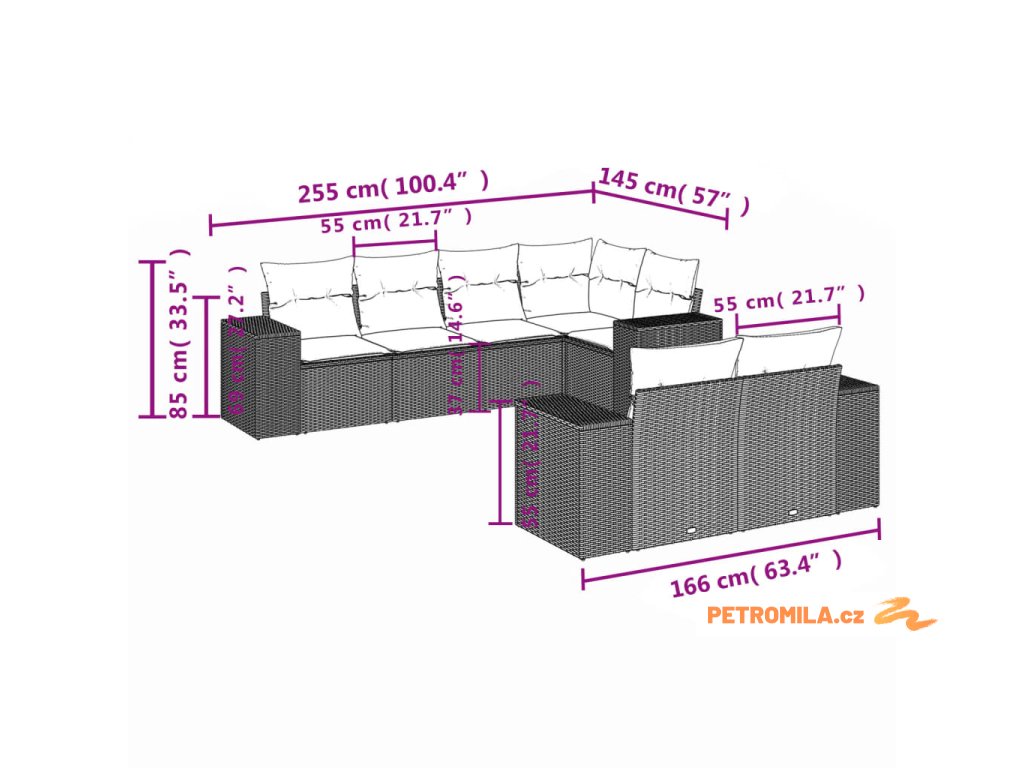 Sada zahradních pohovek s polštářem 8 pcs Béžová Poly ratan