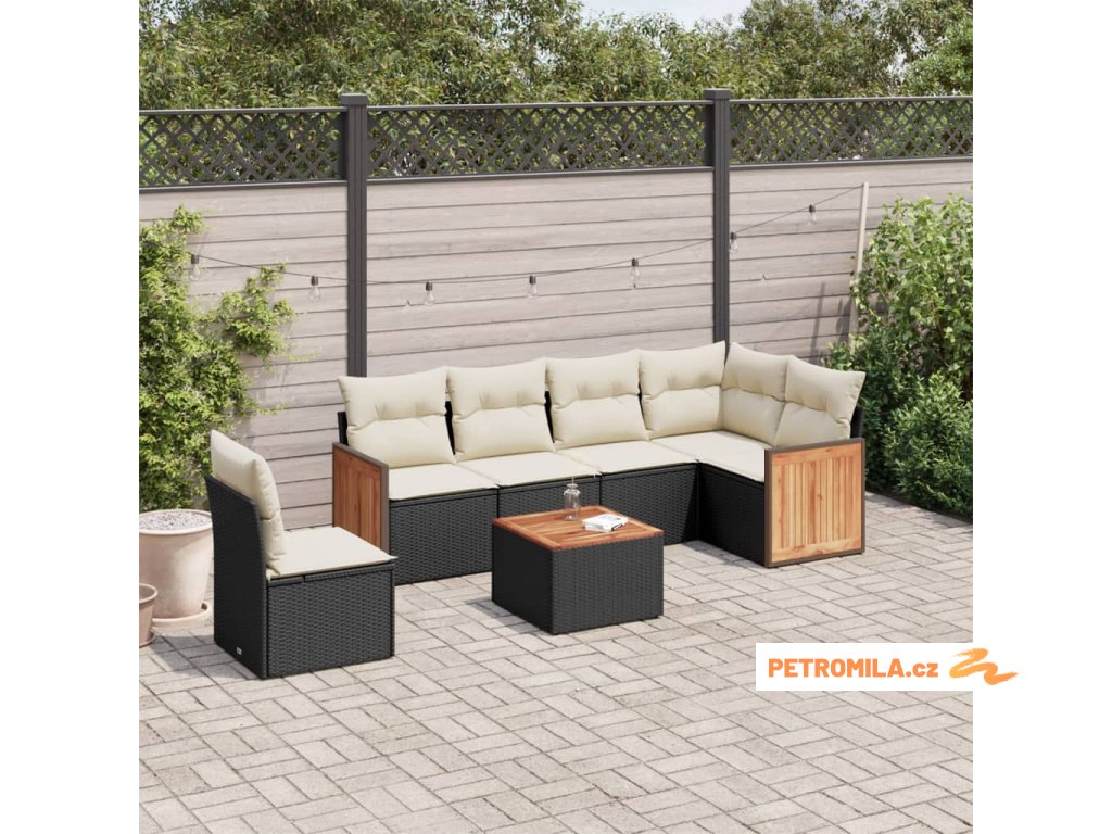 7dílná zahradní sedací souprava s poduškami černá polyratan