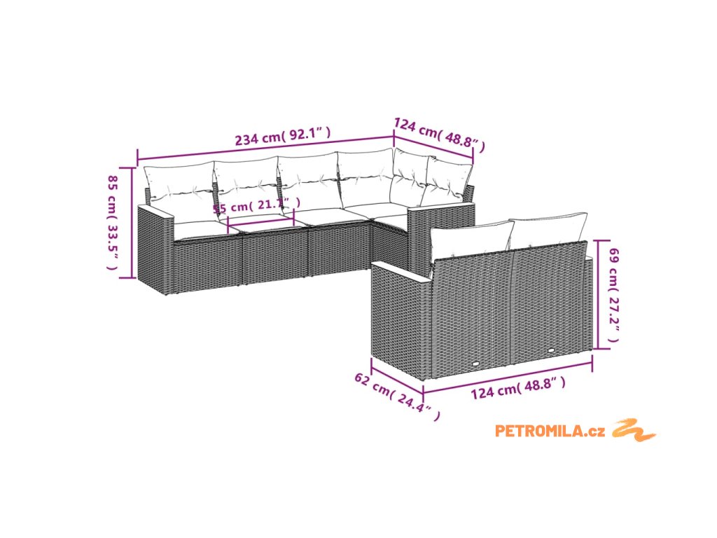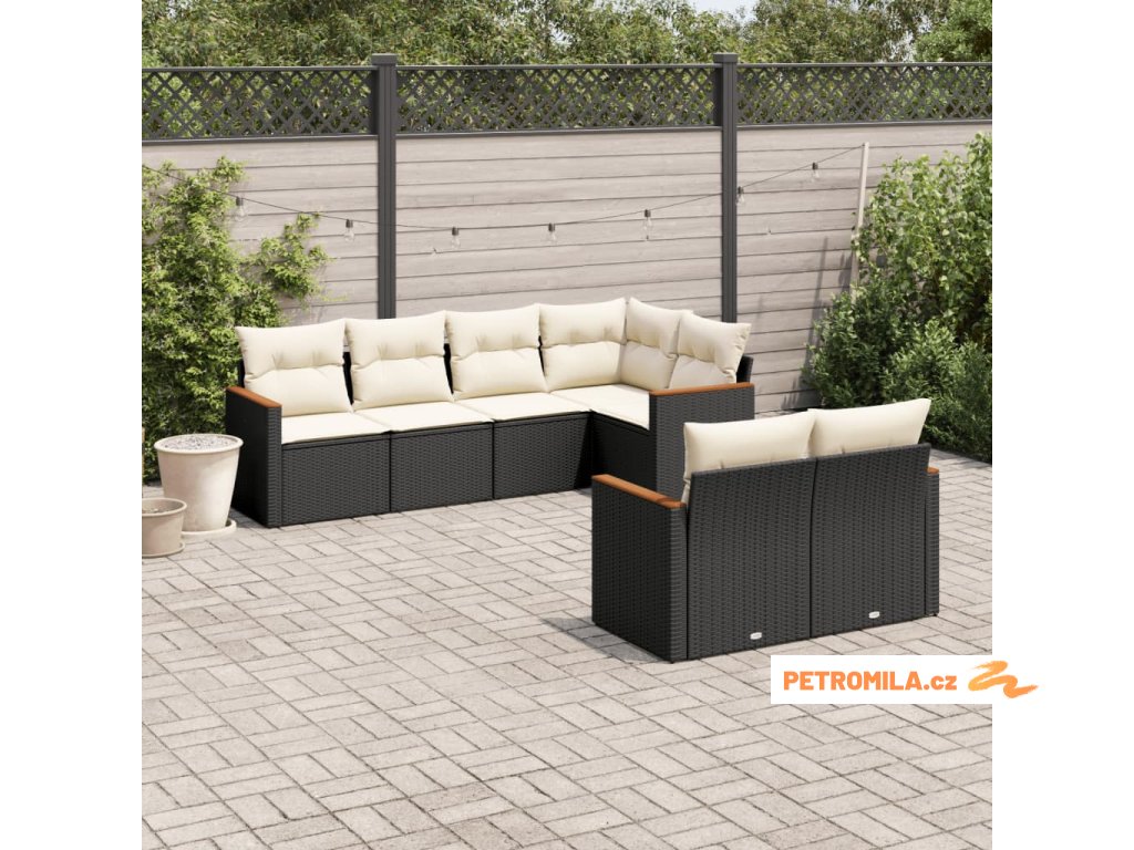 Sada zahradních pohovek s polštářem 6 pcs Černá Poly Ratan