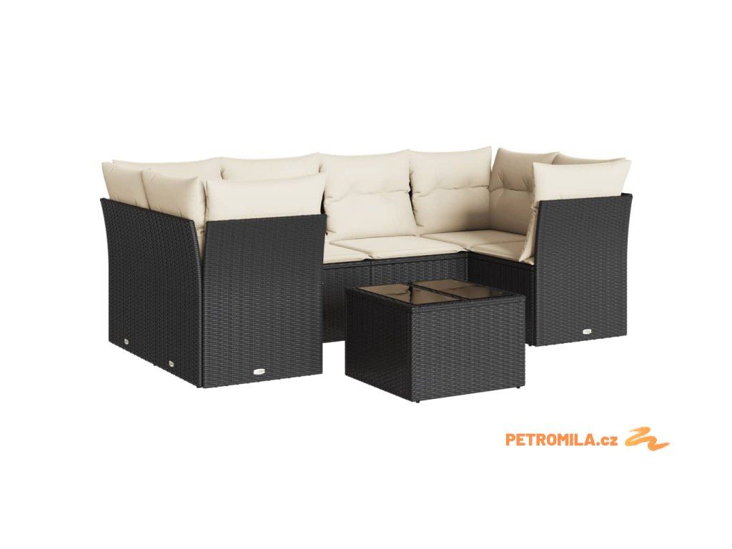 7dílná zahradní sedací souprava s poduškami černá polyratan