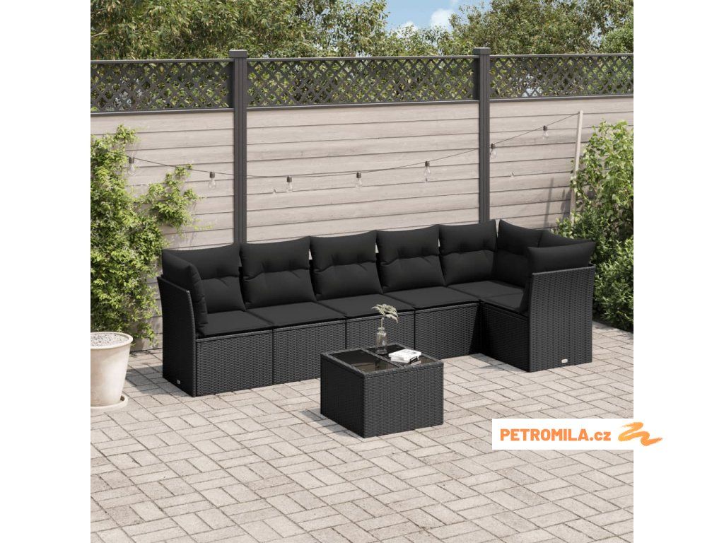 7dílná zahradní sedací souprava s poduškami černá polyratan