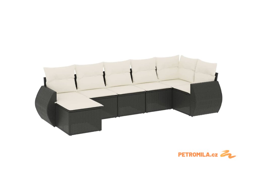 7dílná zahradní sedací souprava s poduškami černá polyratan