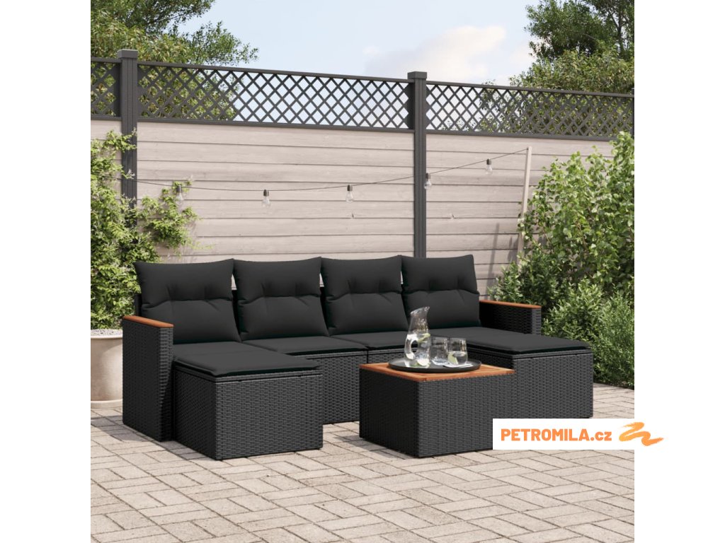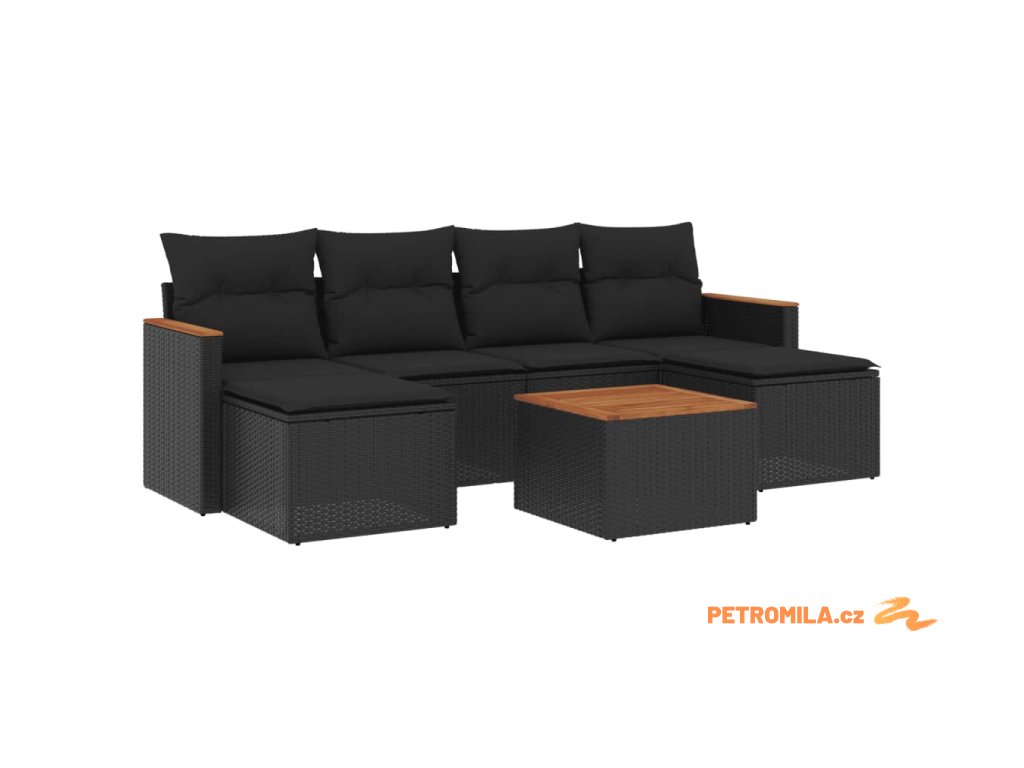 7dílná zahradní sedací souprava s poduškami černá polyratan
