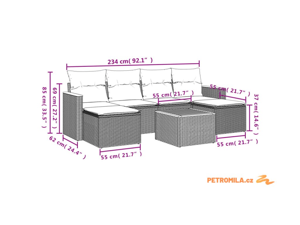 Tato zahradní sedací souprava je dokonalým doplňkem vaší zahrady, terasy nebo dvorku a poskytne vám pohodlné a příjemné místo, kde si můžete povídat s rodinou a přáteli nebo jen tak odpočívat a užívat si pobyt venku.