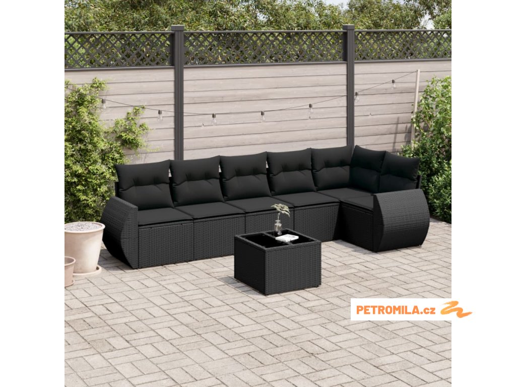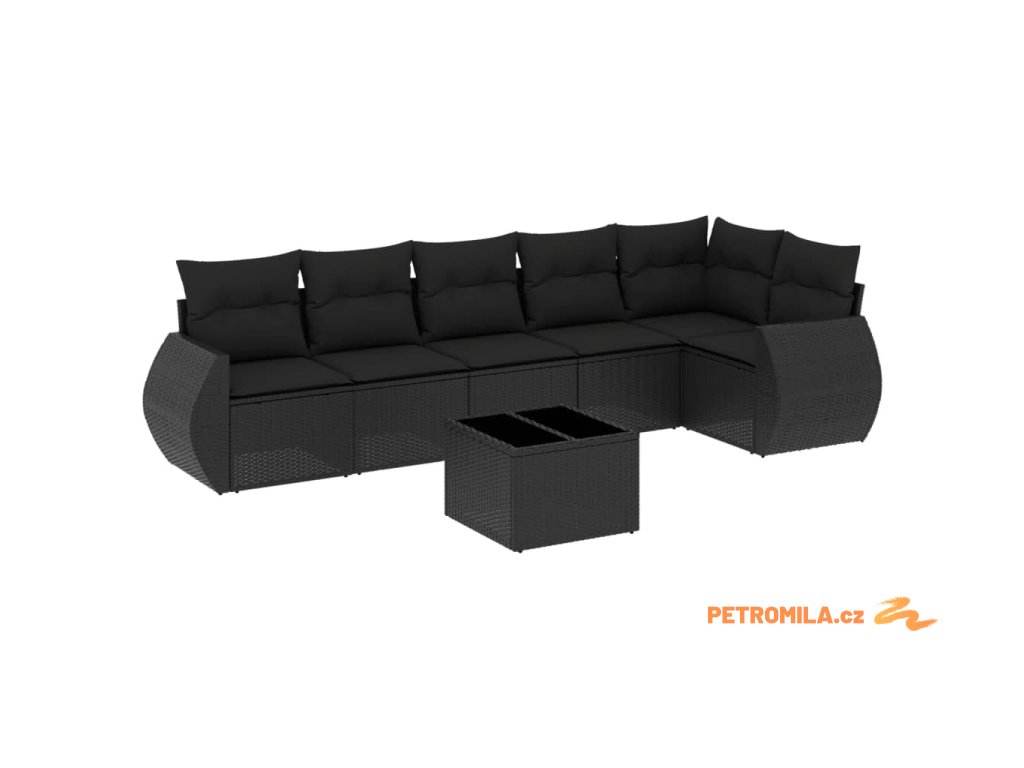 7dílná zahradní sedací souprava s poduškami černá polyratan