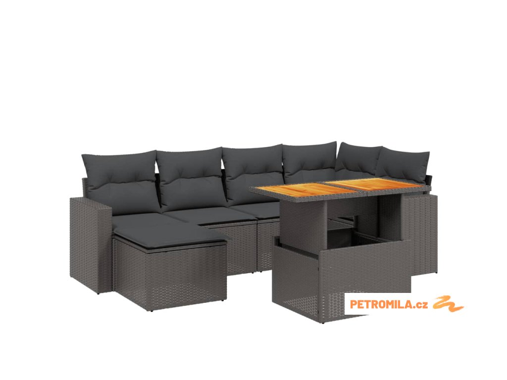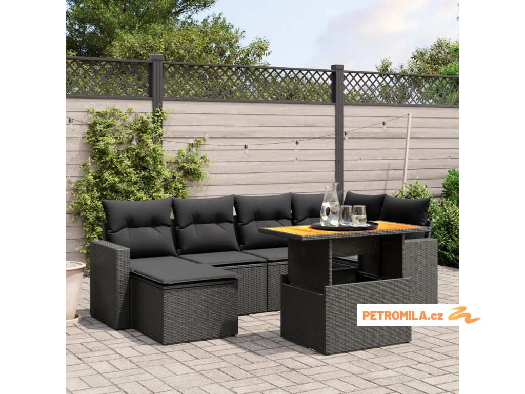 7dílná zahradní sedací souprava s poduškami černá polyratan