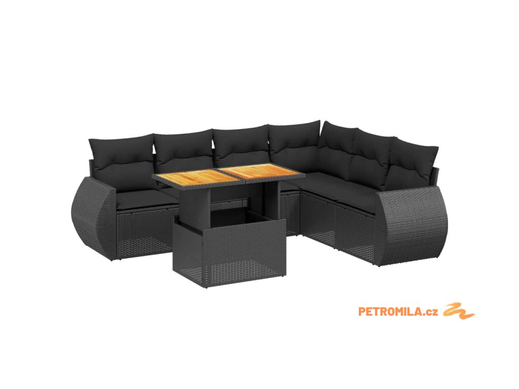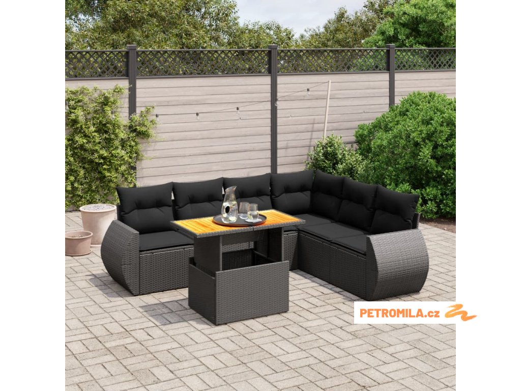 7dílná zahradní sedací souprava s poduškami černá polyratan